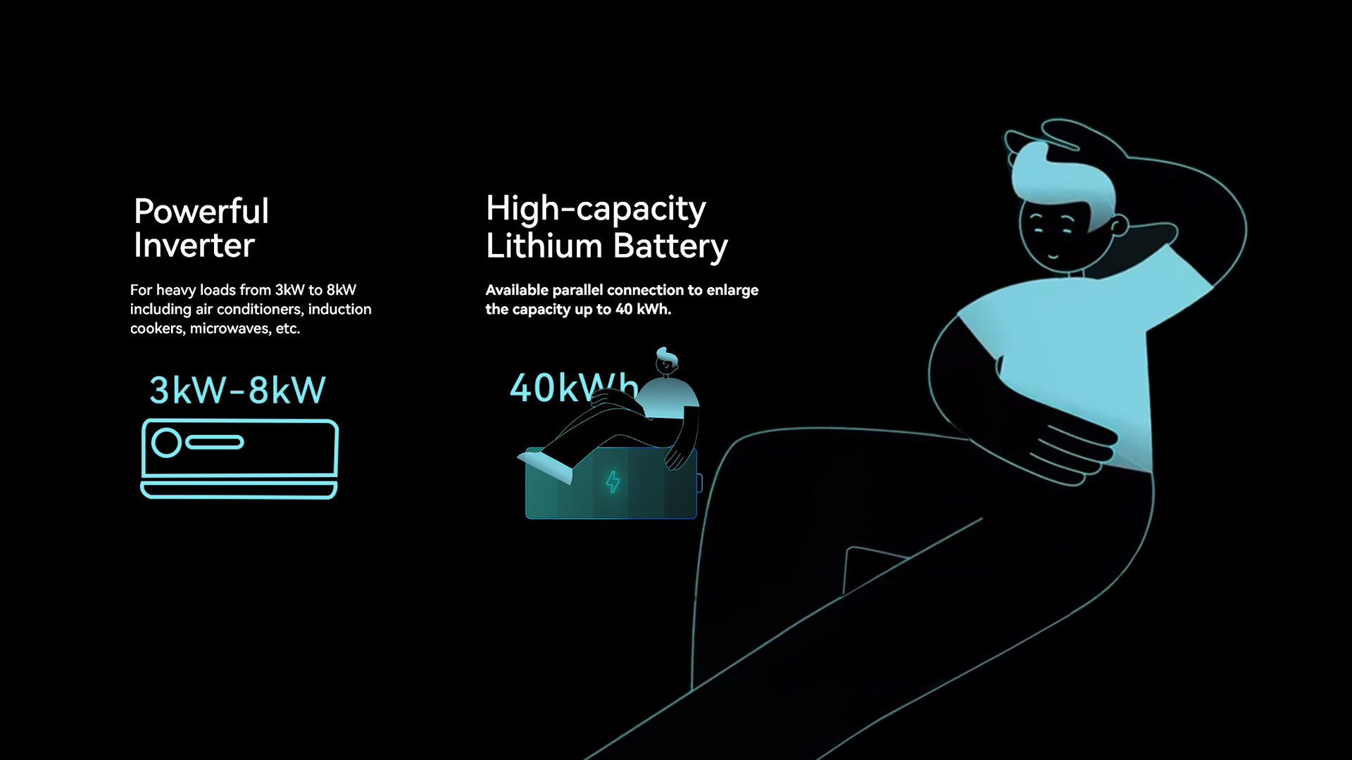 Embrace the AMOY Off-Grid System and embrace in-time and efficient power supply from multiple charging ways including independent in-vehicle charging, PV charging, Grid charging, and EV fast charging.